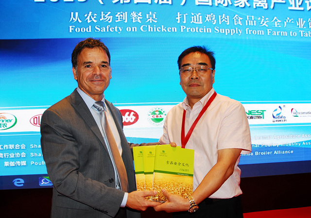 導(dǎo)讀:在2015年8月21至22日于上海召開的、主題為“從農(nóng)場到餐桌,打通雞肉食品安全產(chǎn)業(yè)鏈”的第四屆國際家禽產(chǎn)業(yè)論壇上,沃爾瑪副總裁弗蘭克·揚納斯,向圣農(nóng)發(fā)展股份有限公司常務(wù)副總裁傅細(xì)明,贈送了他撰寫的《食品安全文化》一書。