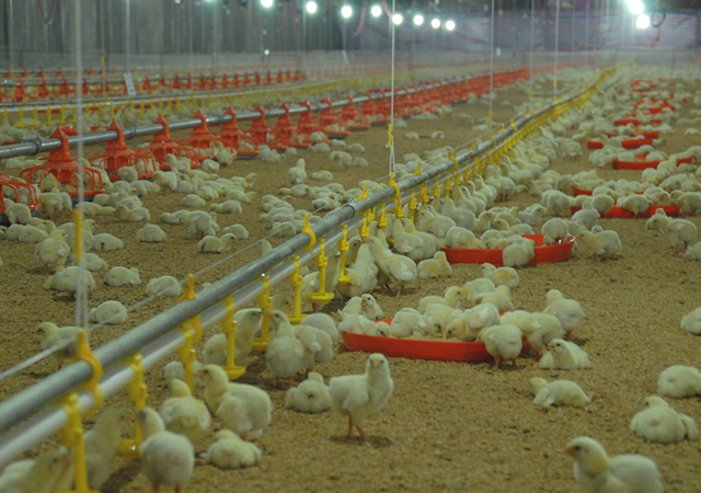 它們的生長被全程監(jiān)管:圣農(nóng)雞場依據(jù)科學(xué)原理,建在生態(tài)優(yōu)越、空氣清新、水質(zhì)優(yōu)良、向陽背風(fēng)的丘陵山坳中,遠離鄉(xiāng)村居民區(qū)、工廠、交通干道,四周筑有圍墻,對場內(nèi)生產(chǎn)區(qū)和生活區(qū)進行了嚴(yán)格的劃分,養(yǎng)殖場大門設(shè)有車輛消毒池、并配備消毒設(shè)施,對進出人員、車輛和物品采取清洗、浸泡、噴霧等消毒措施。專業(yè)免疫隊定期對雞只進行“體檢”,做到“三個百分之百”,即免疫密度達到百分之百、免疫監(jiān)測達到百分之百、免疫抗體保護力達到百分之百,確保雞只健康安全成長。