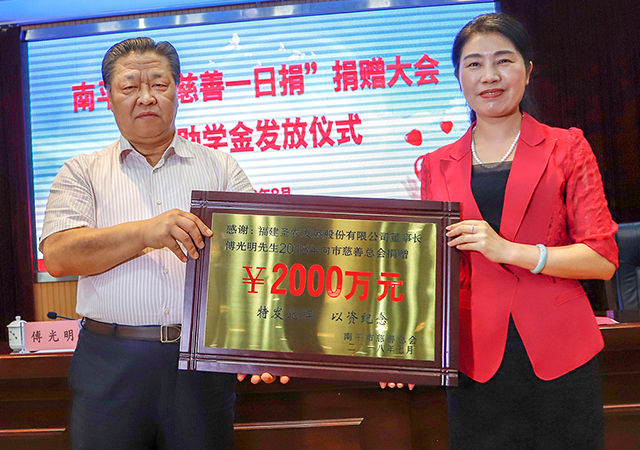 導(dǎo)讀:8月16日,南平市“慈善一日捐”捐贈(zèng)大會(huì)暨助學(xué)金發(fā)放儀式在延平舉辦,市委常委、統(tǒng)戰(zhàn)部長莊莉,市慈善總會(huì)會(huì)長、福建圣農(nóng)發(fā)展股份有限公司董事長傅光明出席活動(dòng)。