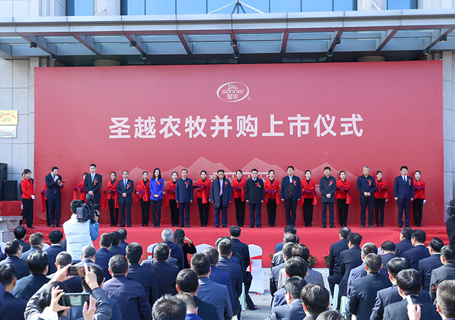隴東十月,糧豐谷碩。10月19日上午,福建圣農(nóng)發(fā)展股份有限公司(股票代碼:002299)與甘肅圣越農(nóng)牧發(fā)展有限公司在慶陽市鎮(zhèn)原縣舉行隆重的并購上市儀式。圣農(nóng)發(fā)展董事長傅光明、圣農(nóng)發(fā)展總裁傅芬芳、甘肅省農(nóng)業(yè)農(nóng)村廳副廳長常宏、慶陽市市委書記黃澤元、鎮(zhèn)原縣縣委書記陳磊、中盛農(nóng)牧董事長張華、以及圣農(nóng)發(fā)展、圣越農(nóng)牧高管等數(shù)十人出席本次活動,共同見證儀式的圓滿完成。